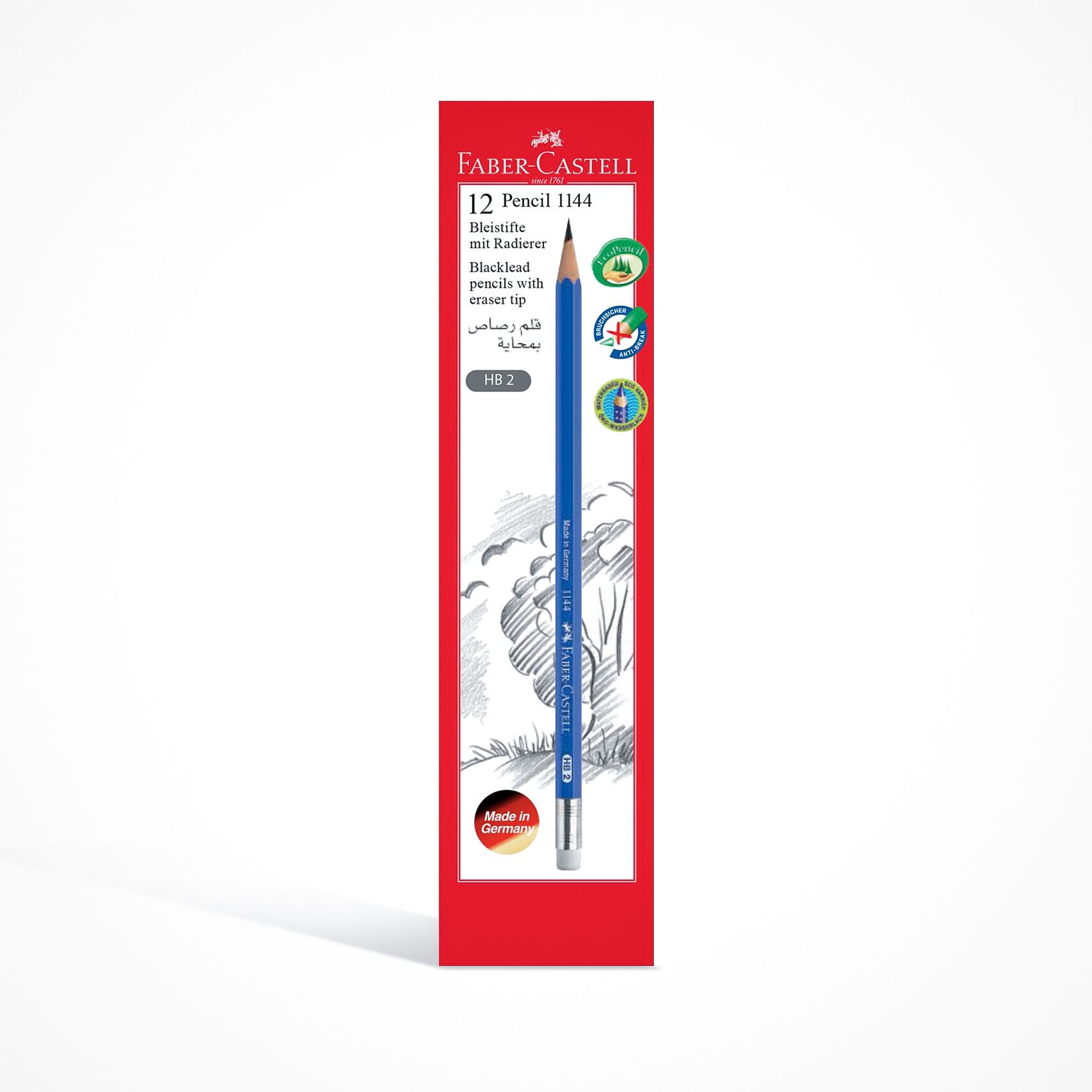 Faber-castell 1144 Graphite Pencil Hb With Eraser Tip Box Of 12pc